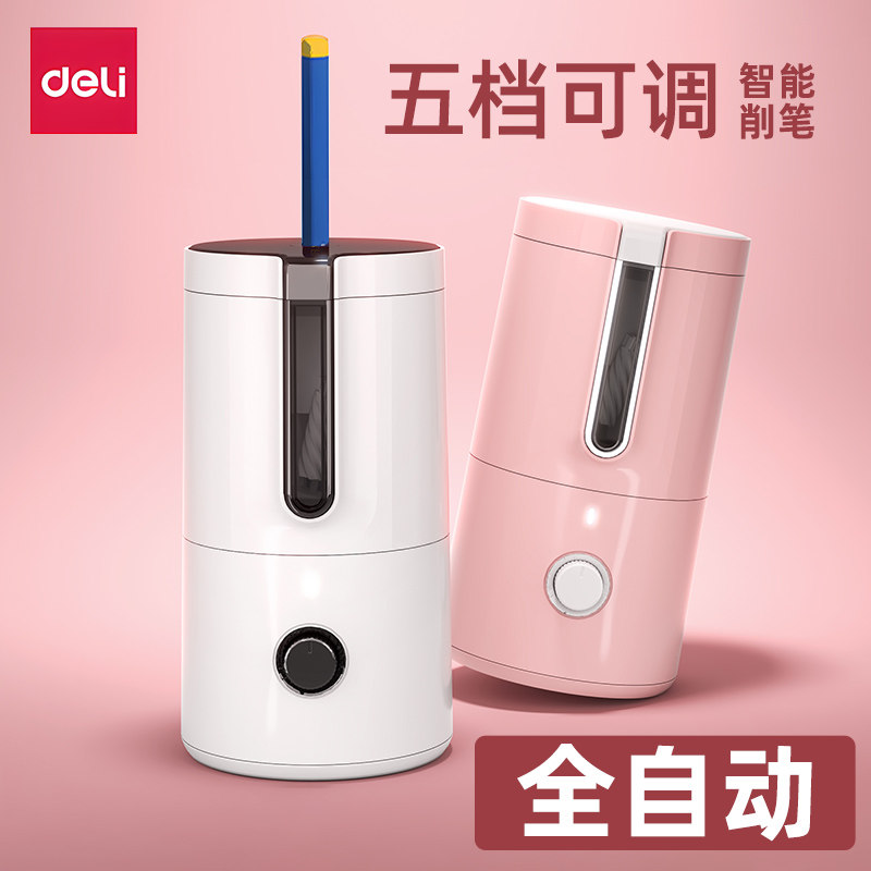 得力全自动电动削笔机小学生削笔器铅笔卷笔刀转笔刀幼儿园男女孩儿童用安全充电款旋绞削笔刀正品新品上市