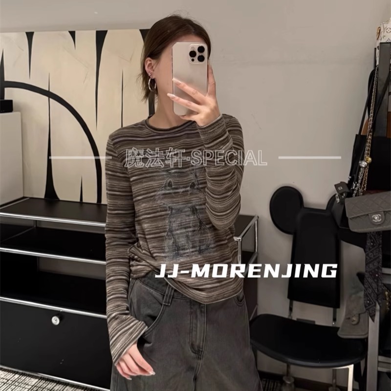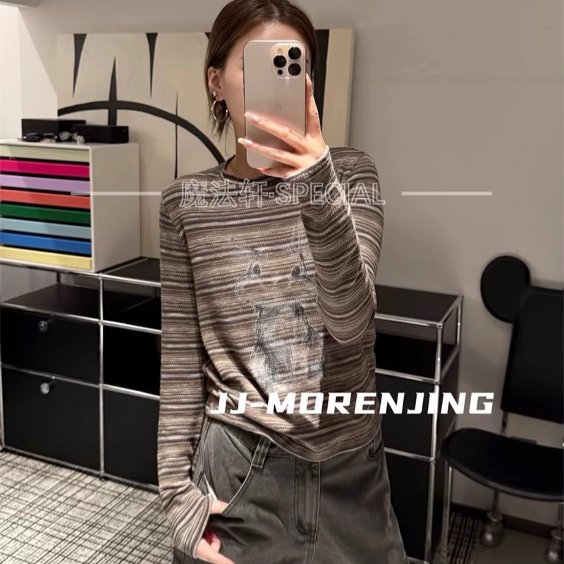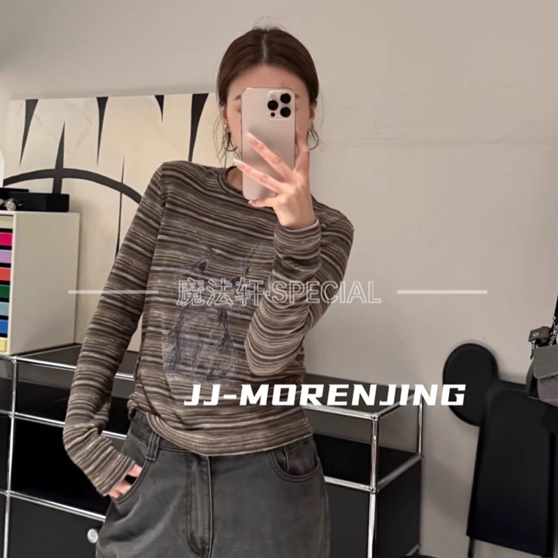 兔子条纹针织衫小衫女2025新款秋冬圆领套头长袖内搭打底衫欧货q