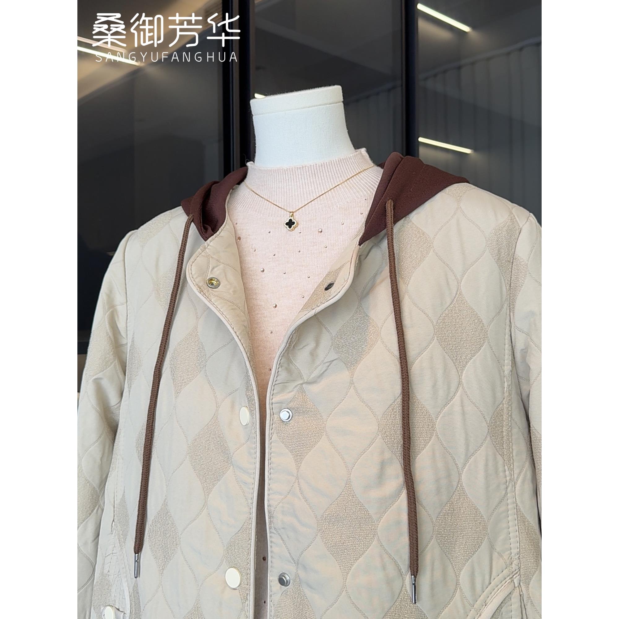 2025新款时尚妈妈秋装连帽菱格短款外套洋气宽松夹克中老年人上衣