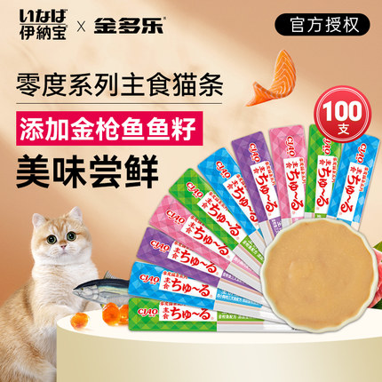 伊纳宝零度猫条100支宠物猫咪主食啾噜营养金枪鱼籽湿粮包猫罐头