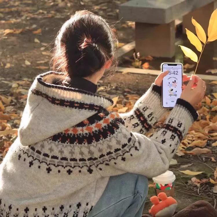 100%纯山羊绒开衫女连帽2025秋冬新款加厚费尔岛慵懒针织毛衣外套