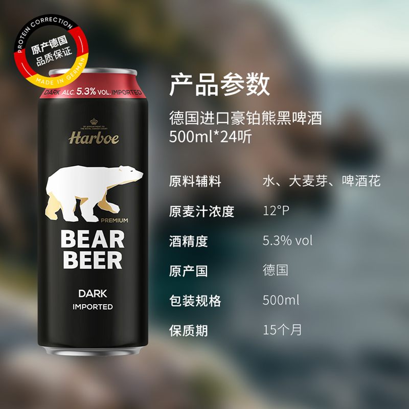 【德国原装进口】豪铂熊黑啤啤酒500ml*24听整箱装