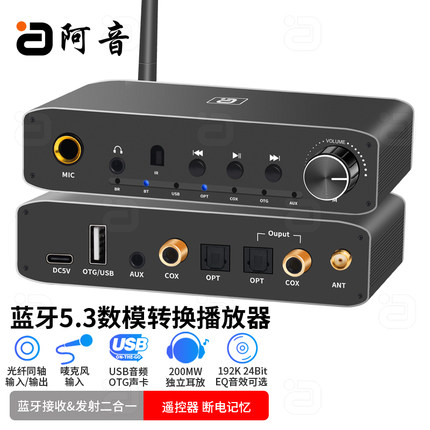 阿音蓝牙5.3音频接收发射器DAC数模音频解码播放器K歌外置声卡USB