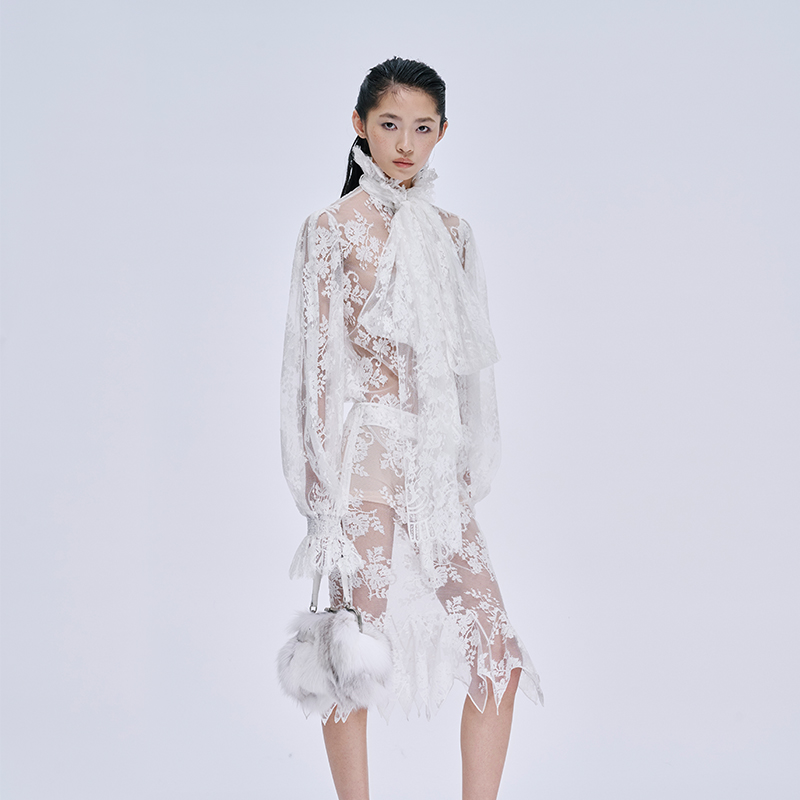 古力娜扎同款MARKGONG蕾丝抽褶衬衫半身鱼尾裙CHENSHOP设计师品牌