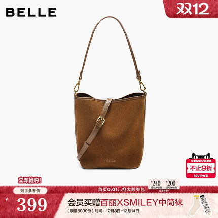 百丽包包女25新商场同款反绒麂皮通勤单肩斜挎菜篮子水桶包X7377C