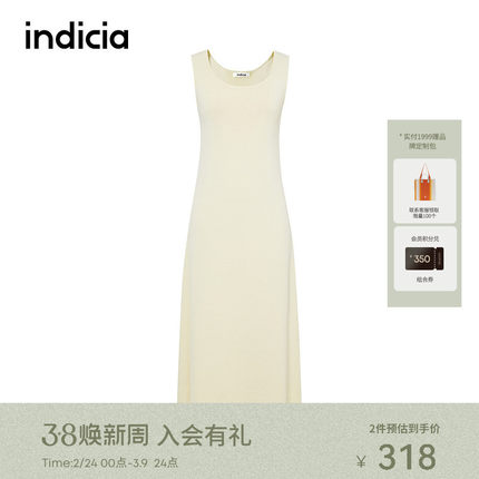 indicia标记商场同款早春简约纯色U领无袖背心连衣裙6A403LQ183C