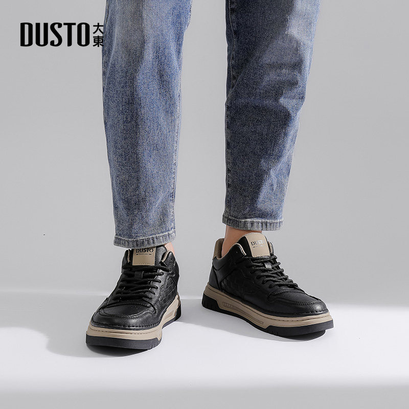 大东板鞋男鞋2025秋季新款休闲平底中跟系带拼色Q0105