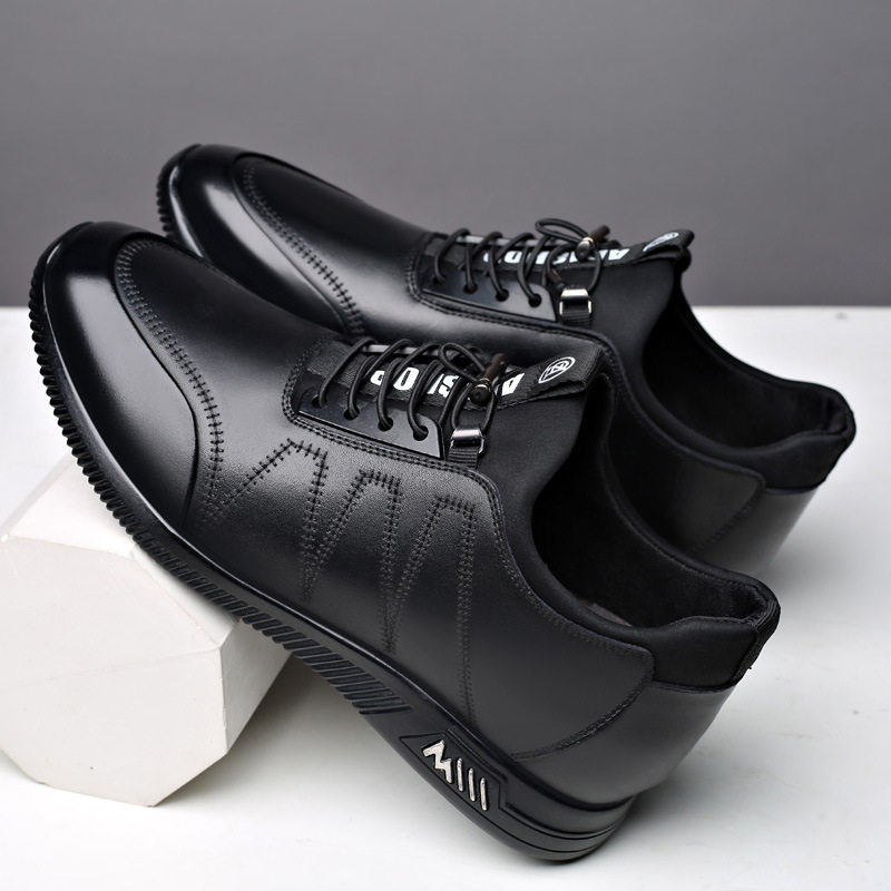 白色2025新款男士休闲隐形内增高男鞋韩版潮流鞋子男舒适增高皮鞋