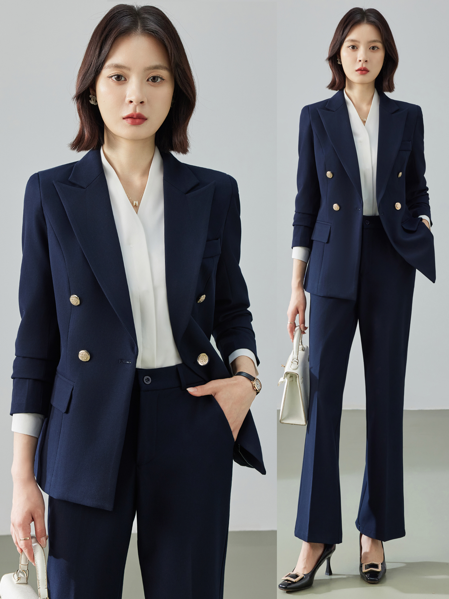 灰色西装套装女士高级感轻职场双排扣大学生面试职业正装西服外套