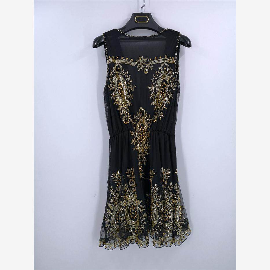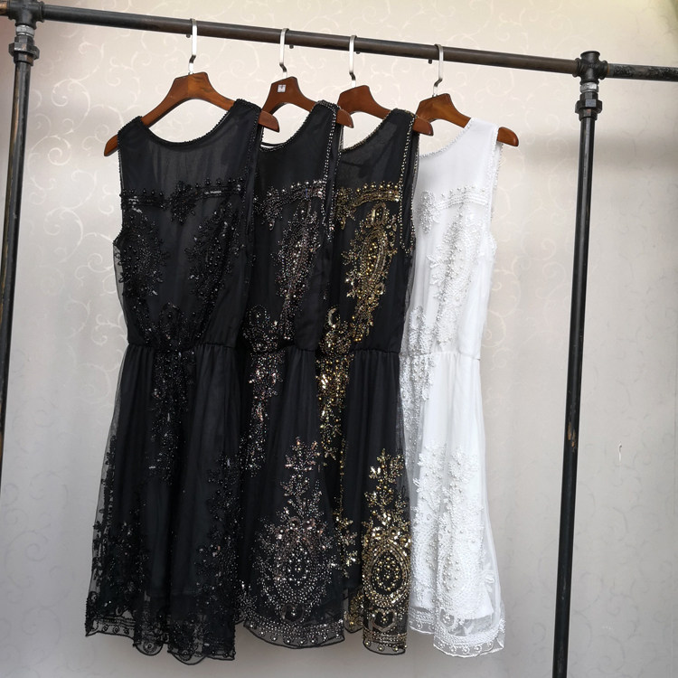 韩版夏季新款蕾丝亮片连衣裙女无袖修身显瘦收腰a字裙小黑裙