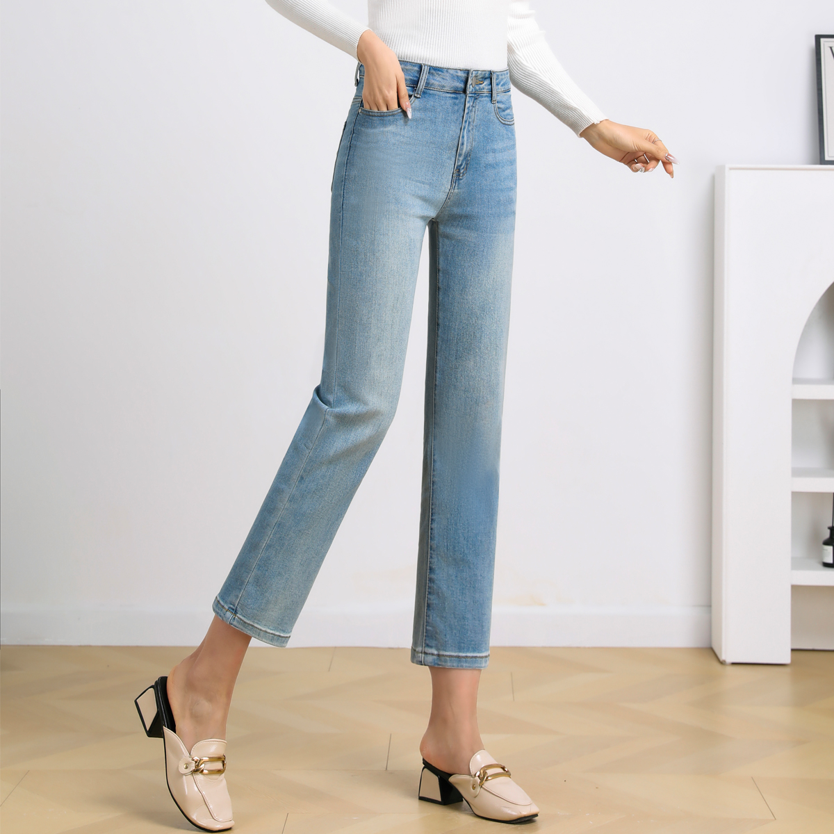 窄版直筒九分牛仔裤女2025年新款