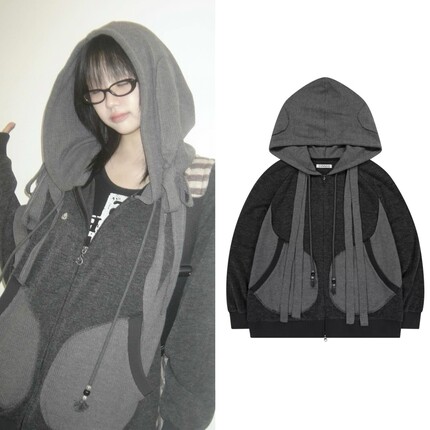 【现货】韩国coyseio复古拼接色连帽卫衣拉链衫外套林娜琏同款女