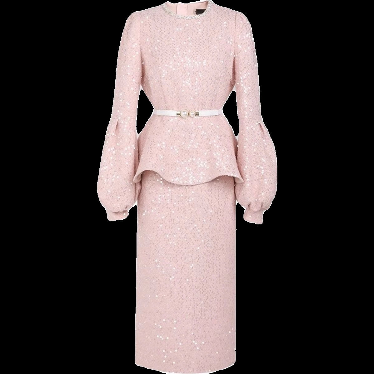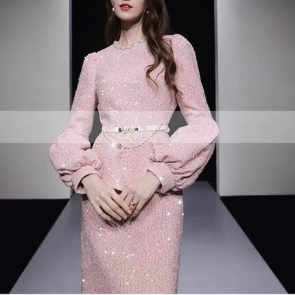 秋冬季新款女装轻奢宫廷小香风两件套毛呢荷叶上衣一步裙半裙套装