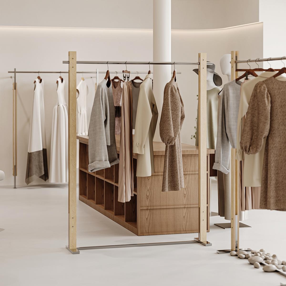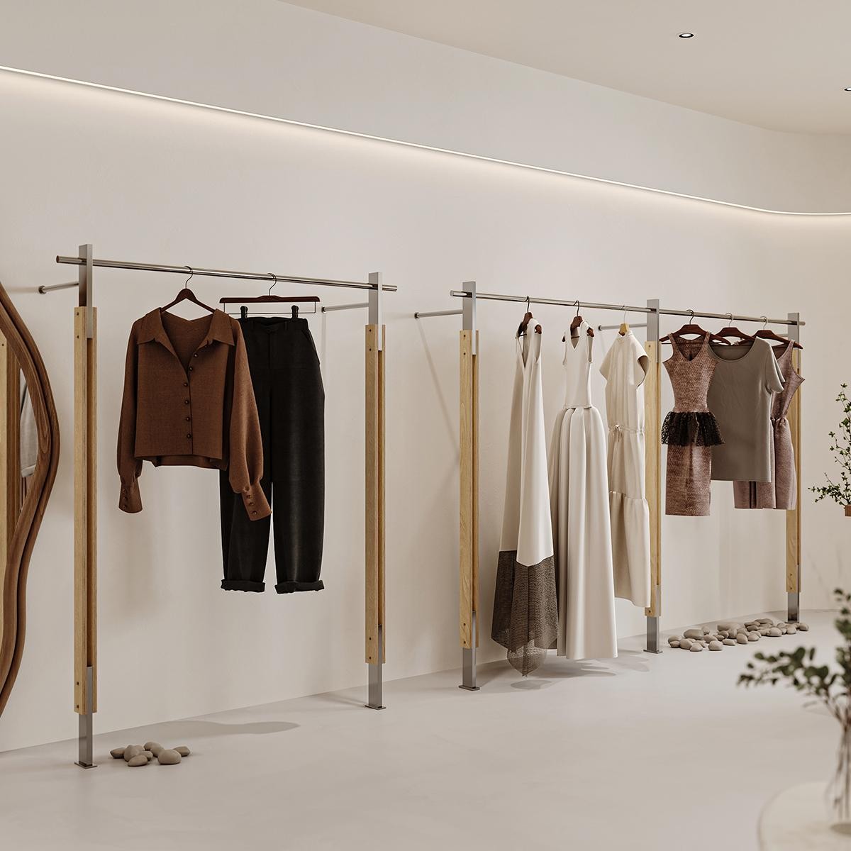 桦木海洋板服装店展示架落地式带轮子陈列专用女装挂衣架移动货架