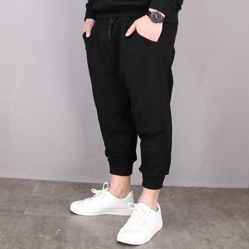 潮胖子裤子男大码九分裤加绒加肥加大运动裤冬季休闲裤宽松哈伦裤