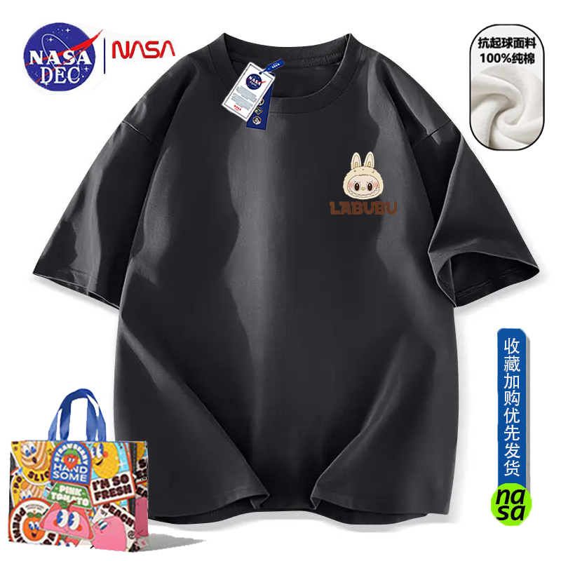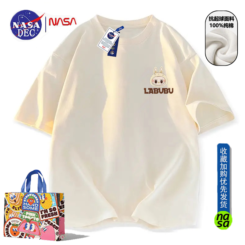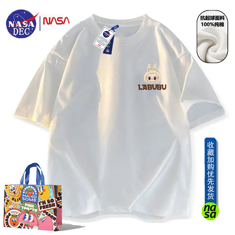 NASA联名潮牌拉布布印花纯棉短袖T恤男女夏季宽松时尚ins半袖上衣