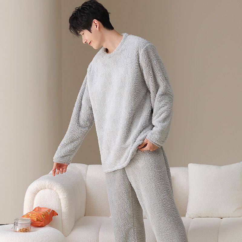 欧迪芬睡衣男士睡衣秋冬款加绒保暖圆领套头宽松可外穿家居服套装