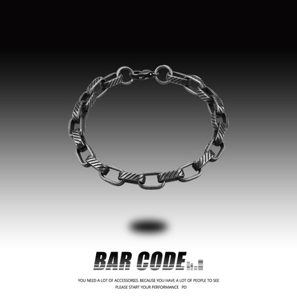 BARCODE欧美复古做旧感条纹古巴手链男潮ins冷淡风个性钛钢手环女
