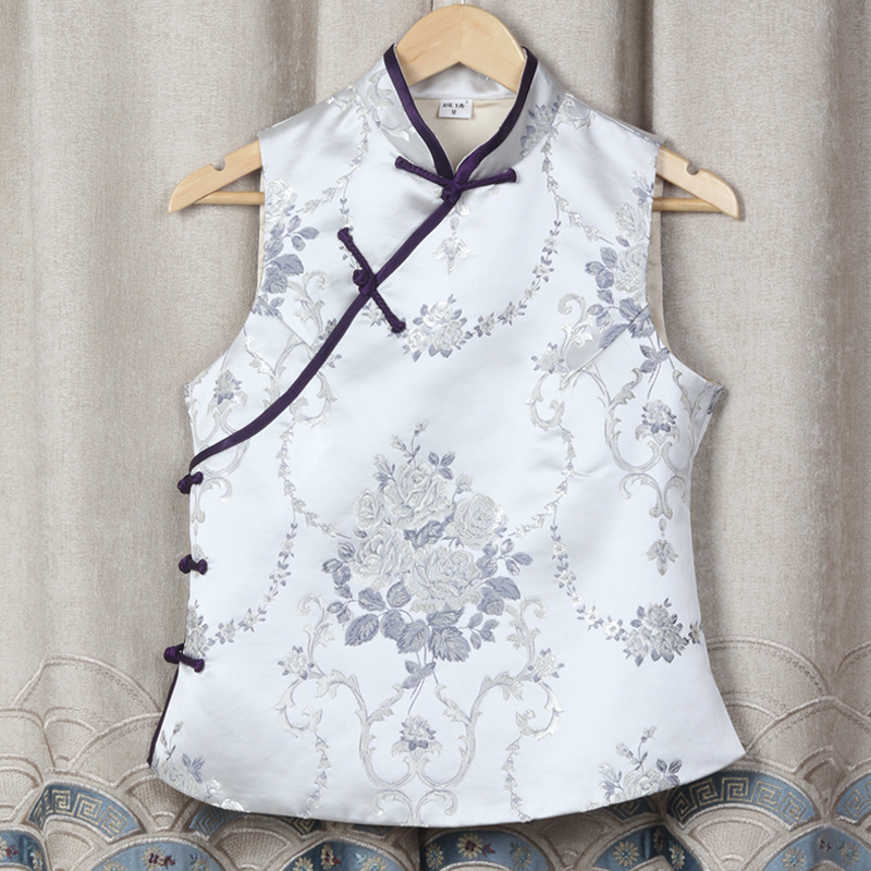 洋气春秋冬季原创织锦民族风刺绣花立领短马夹马甲女上衣唐装外套
