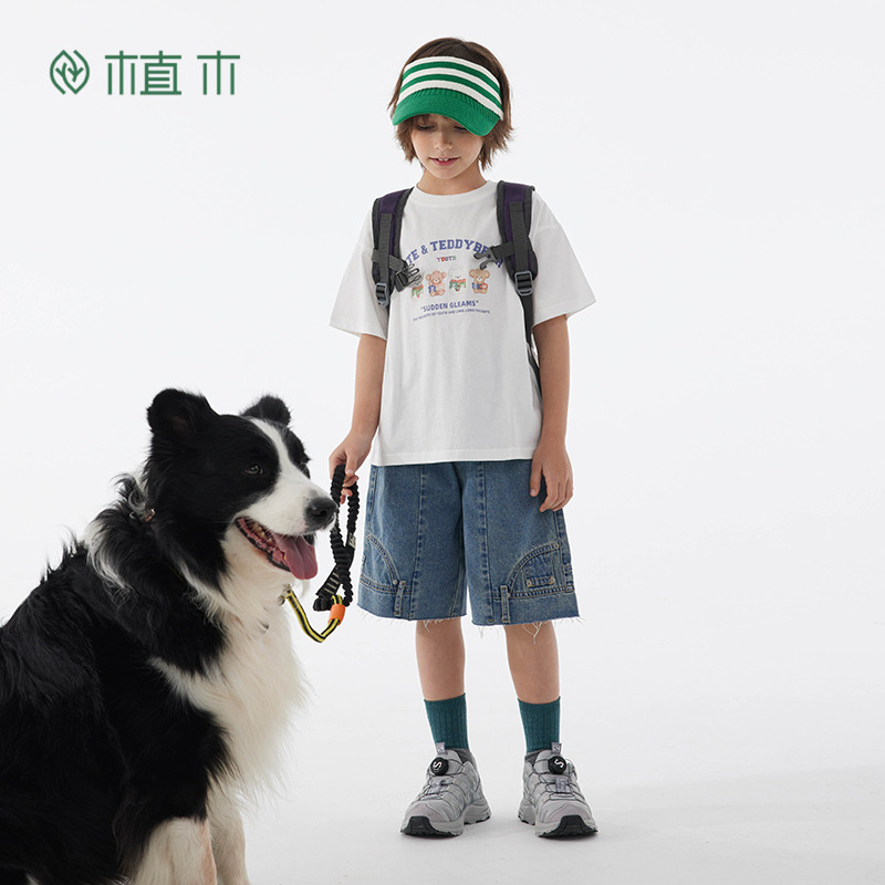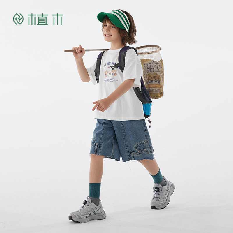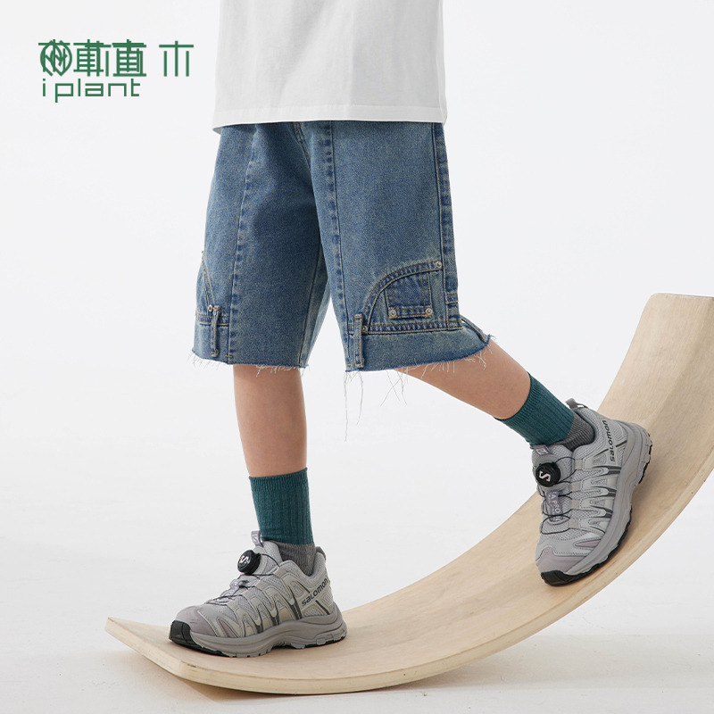 植木童装休闲短裤男童牛仔裤中大童2025夏装新款儿童设计感中裤潮