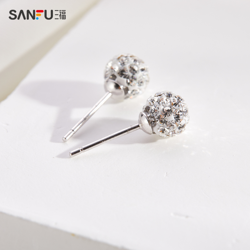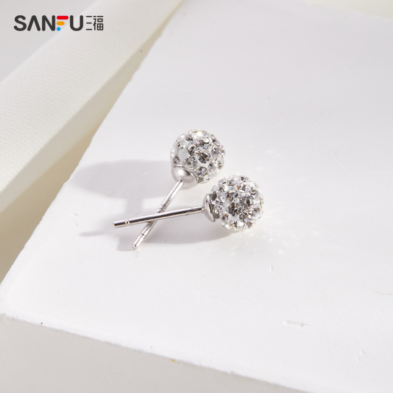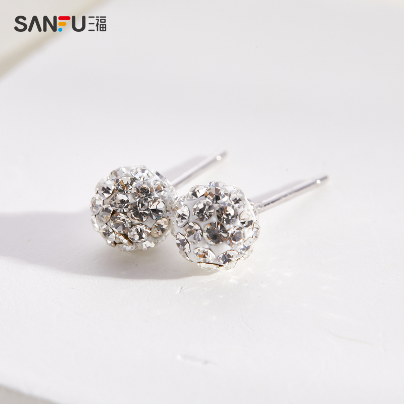 三福925银经典钻球耳钉一对 时尚气质设计感首饰耳环 822603