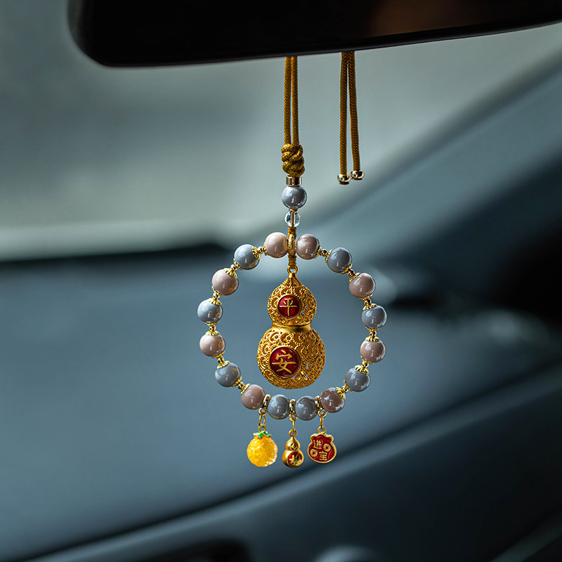 朴房平安福禄葫芦汽车挂件精美陶瓷串珠创意高档女后视镜吊坠挂饰