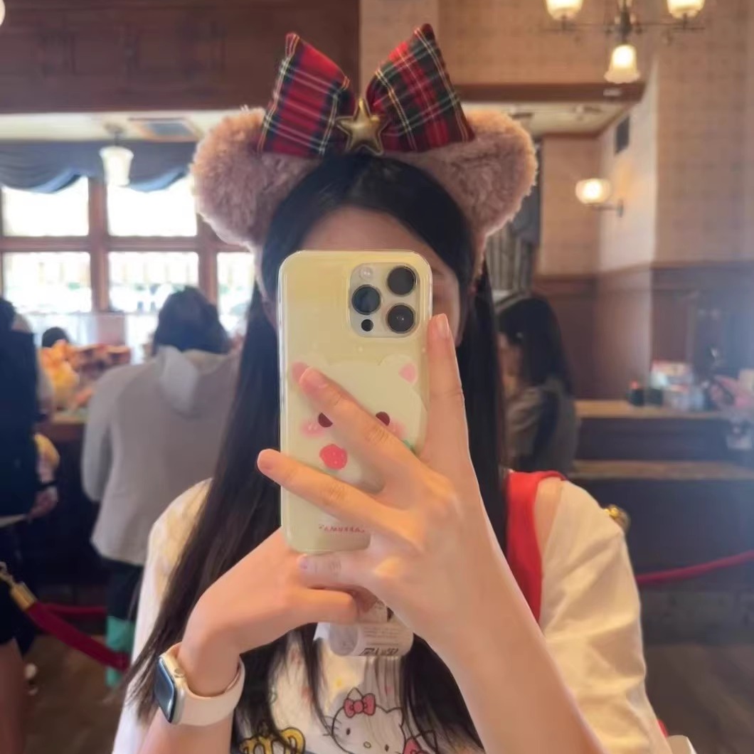 2024达菲熊发箍子卡通可爱圣诞帽子姜饼人造型毛绒头箍拍照发饰女