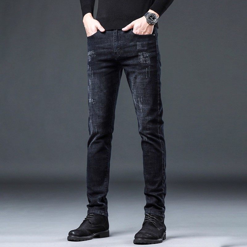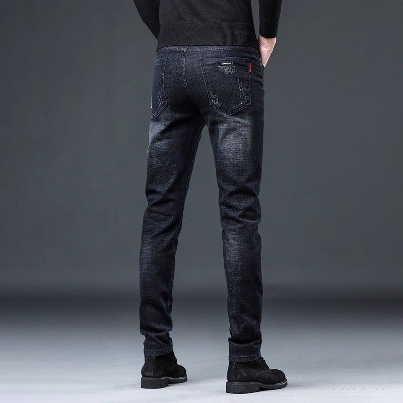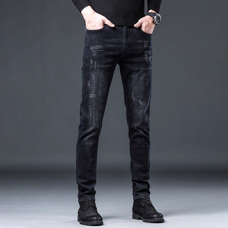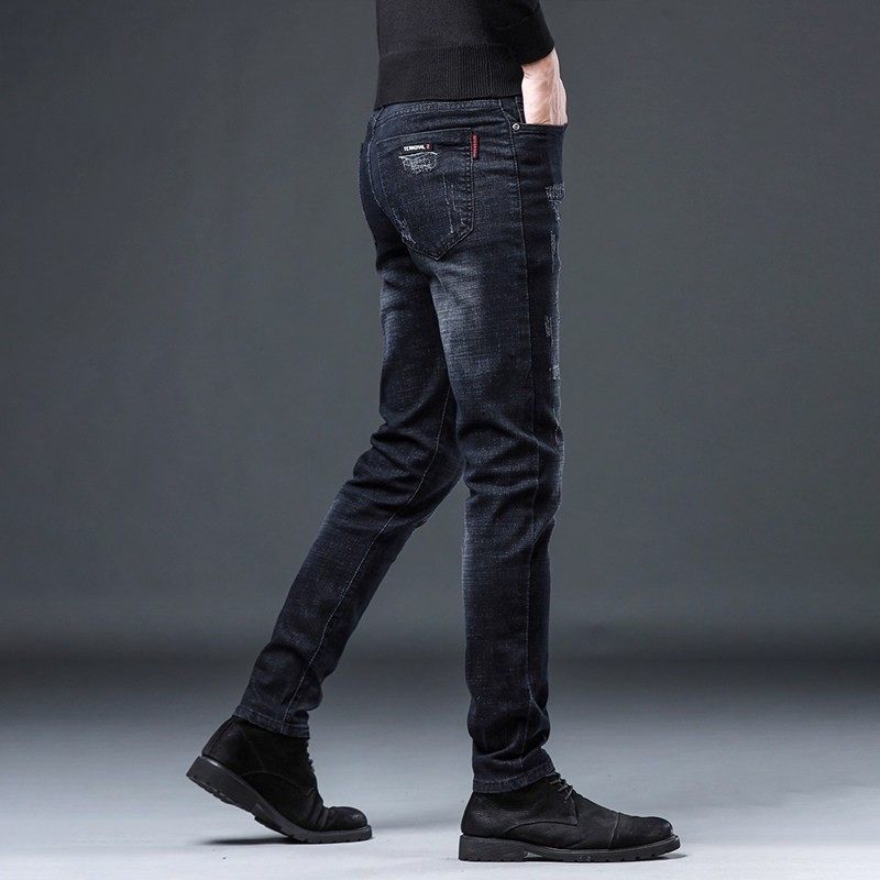 香港高端潮牌黑色牛仔裤男士春秋季韩版潮流修身小脚弹力休闲裤子