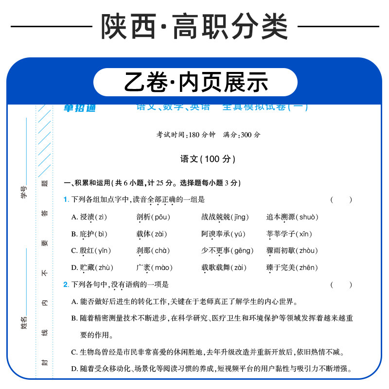 单招通2026年陕西省单招考试历年真题普高三校生高职院校分类招生考试语文数学英语甲卷乙卷教材题库试卷中职中专考试复习资料2025