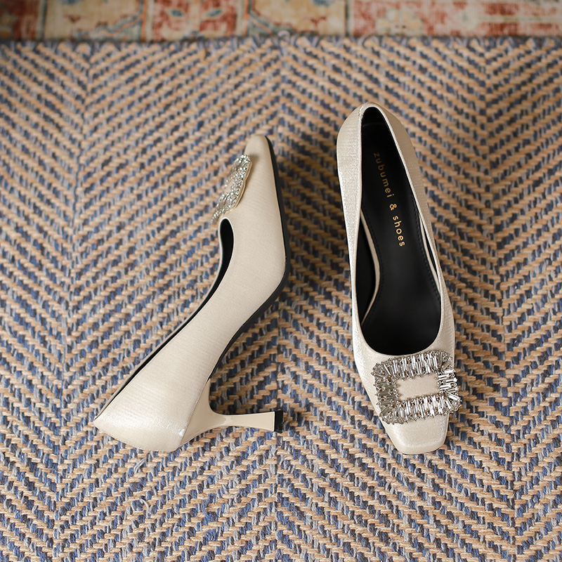 水钻方扣细跟单鞋气质高跟鞋通勤