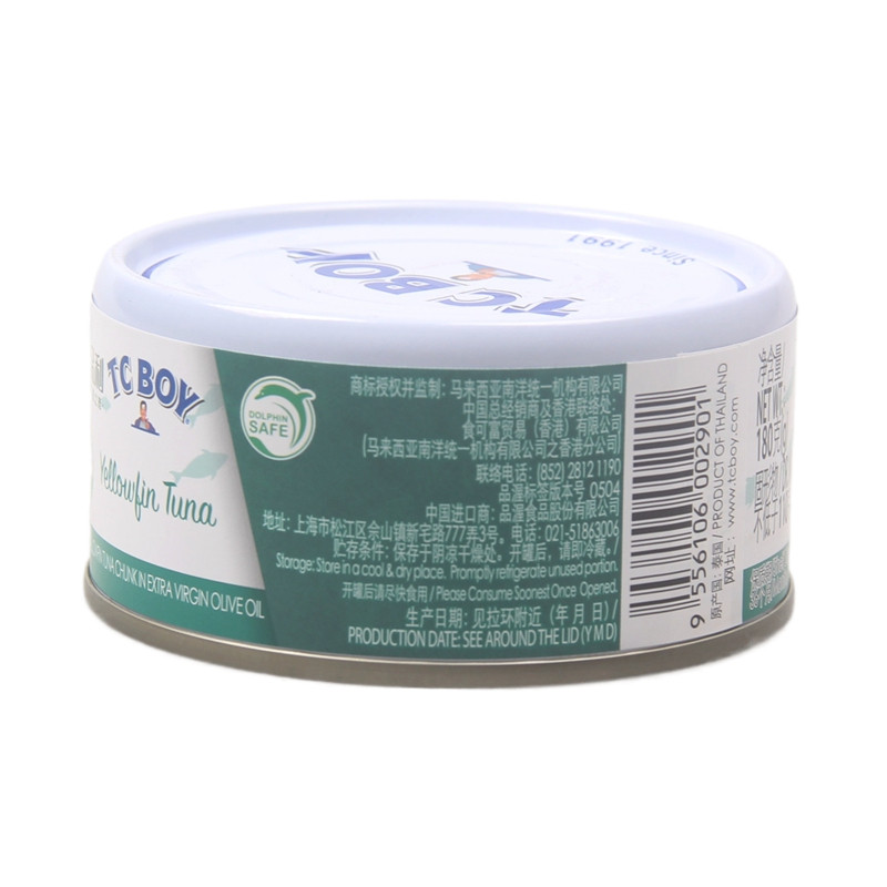泰国进口品利TCBOY小胖子金枪鱼罐头180g特级初榨橄榄油浸