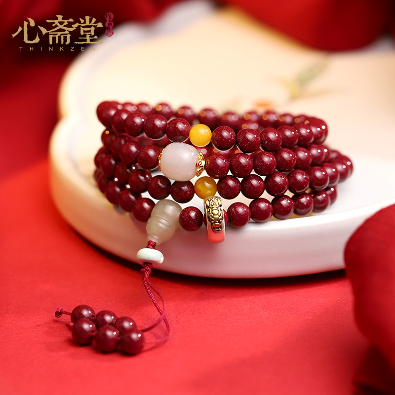 心斋堂【壹心】天然朱砂108颗佛珠手串女款官方旗舰店本命年手链