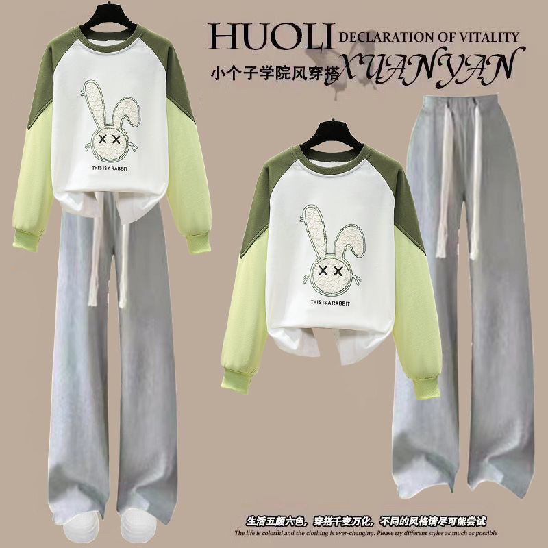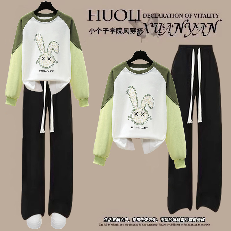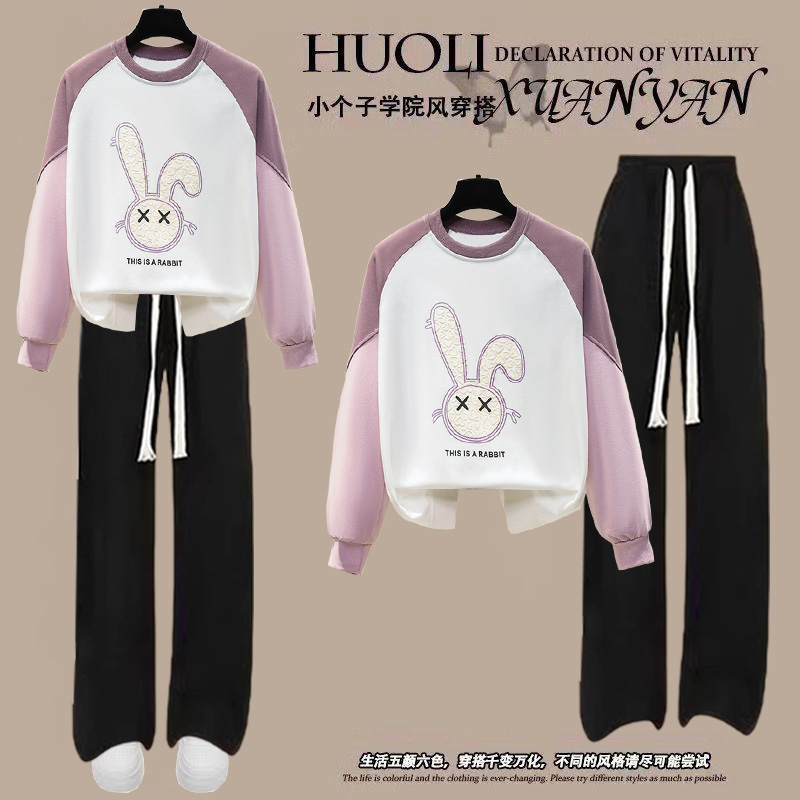 中大童2024年秋季新款学生初中生休闲时髦少女卫衣女童阔腿裤套装