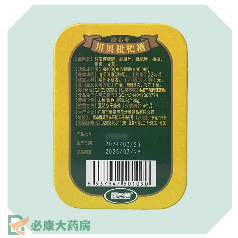 潘高寿 川贝枇杷糖 2.2g*20粒/盒 清咽润喉