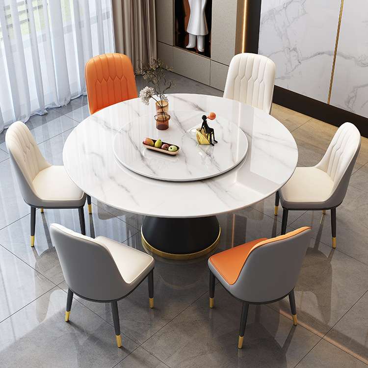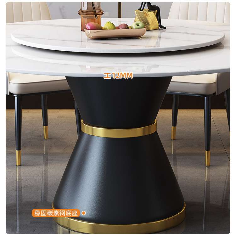 轻奢圆形餐桌现代简约家用岩板餐桌椅组合10人位饭桌带旋转圆盘