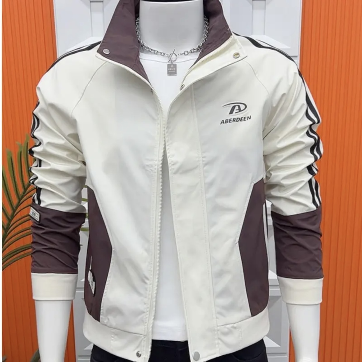 2025新款男士夹克外套春秋时尚韩版修身拼色高级感立领百搭上衣潮