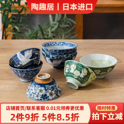 日本进口高脚碗米饭碗汤碗釉下彩鹤青蛙梅花家用釉下彩陶瓷专用碗