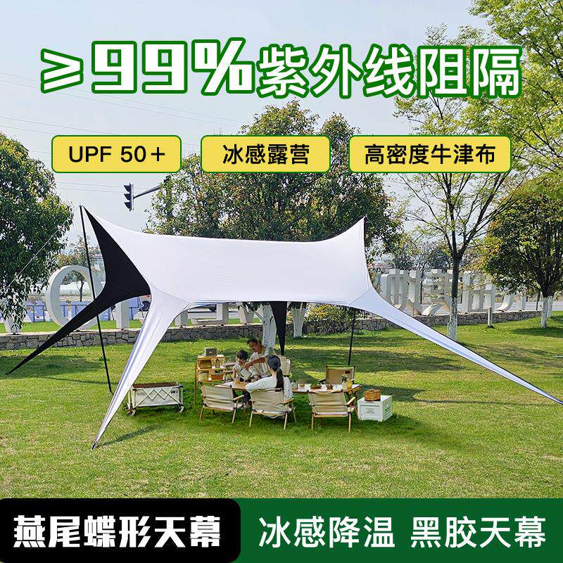 天幕户外露营帐篷遮阳天幕燕尾加厚黑胶天幕防晒涂银野营遮阳凉棚