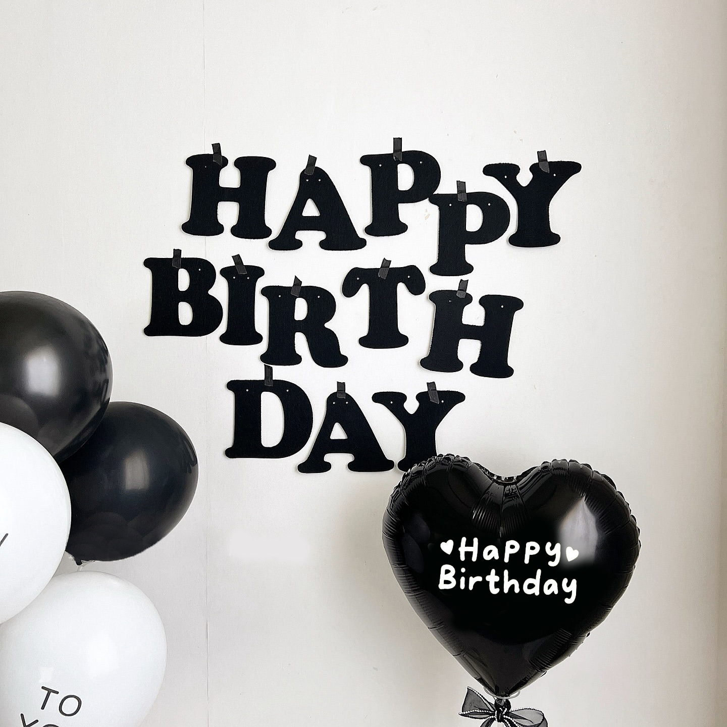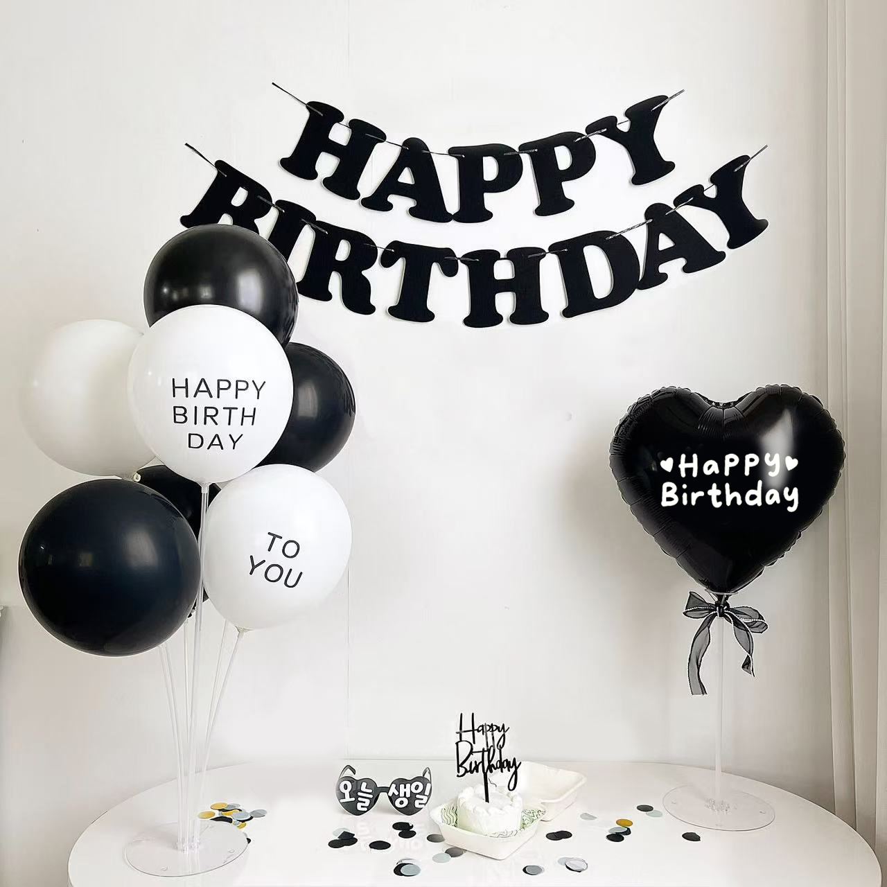 ins风黑白色简约生日气球儿童周岁氛围拍照背景搭建布置