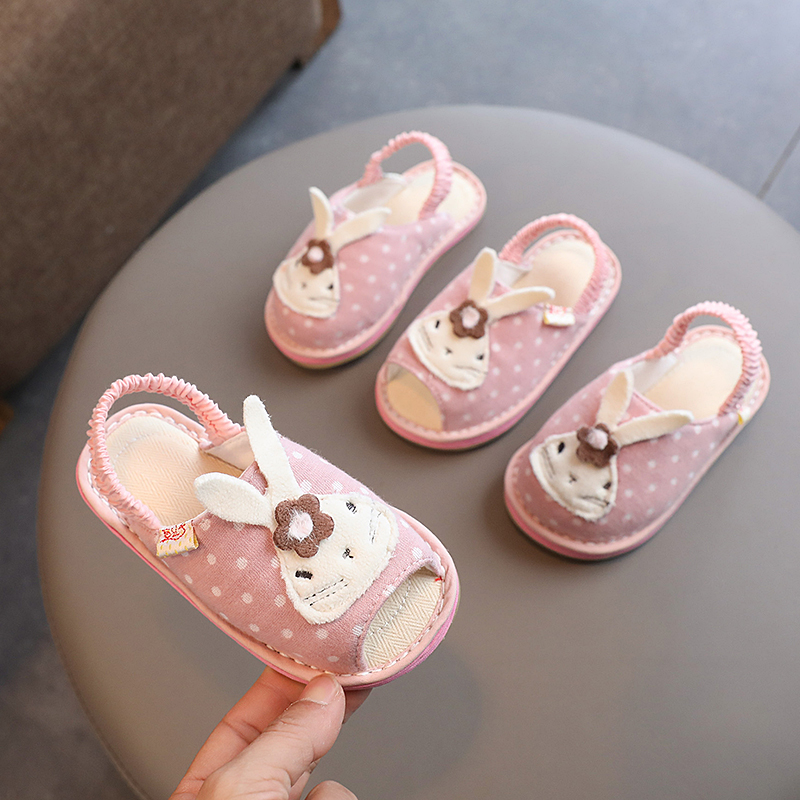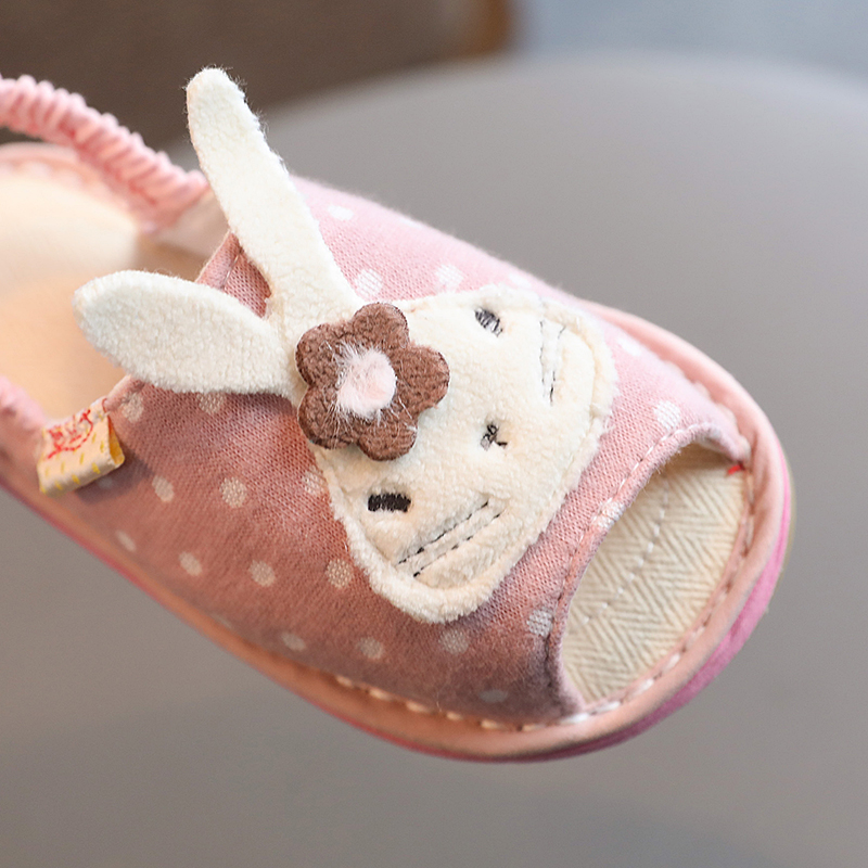 女童拖鞋夏春秋棉布小童防滑室内软底家居鞋可爱宝宝拖鞋1-3-7岁