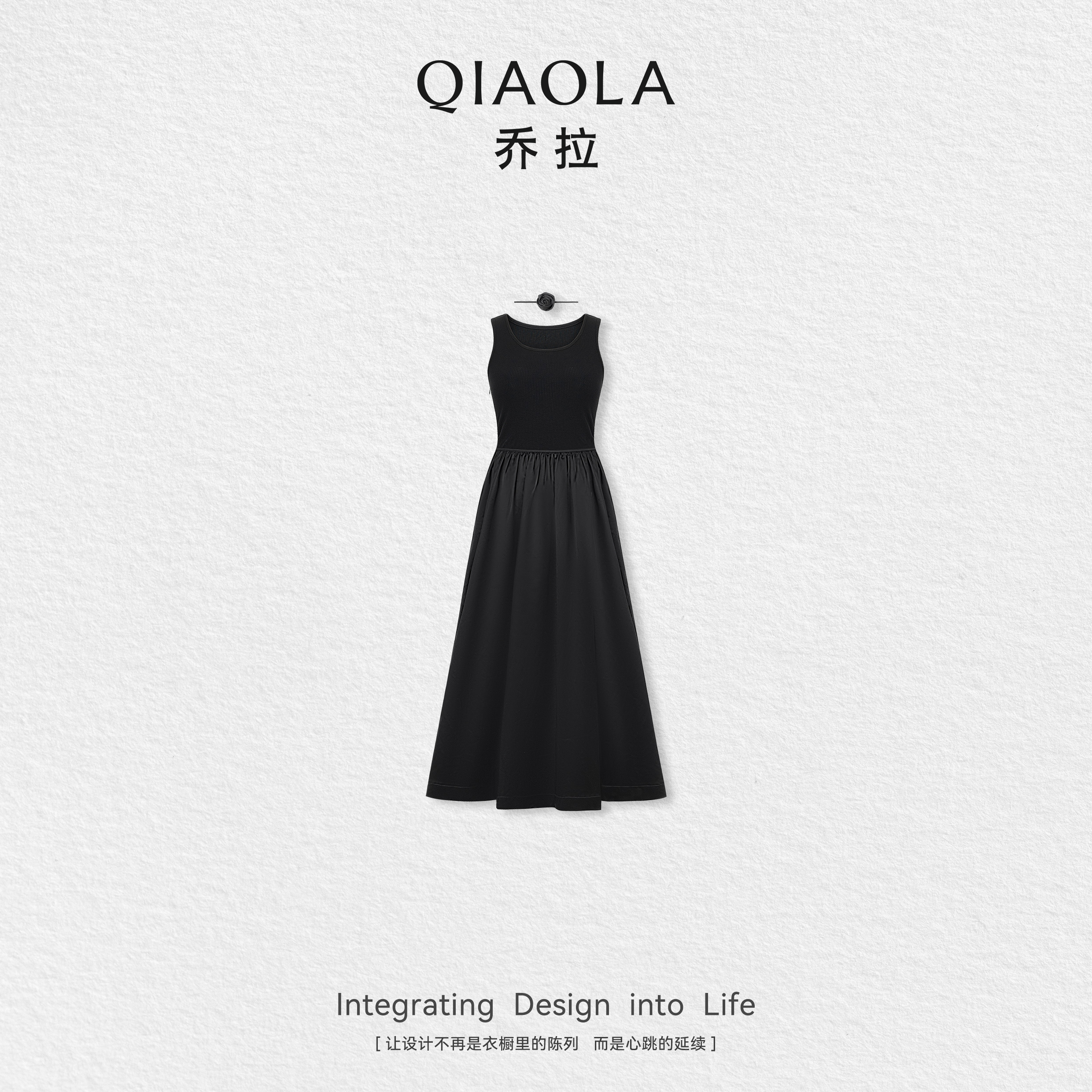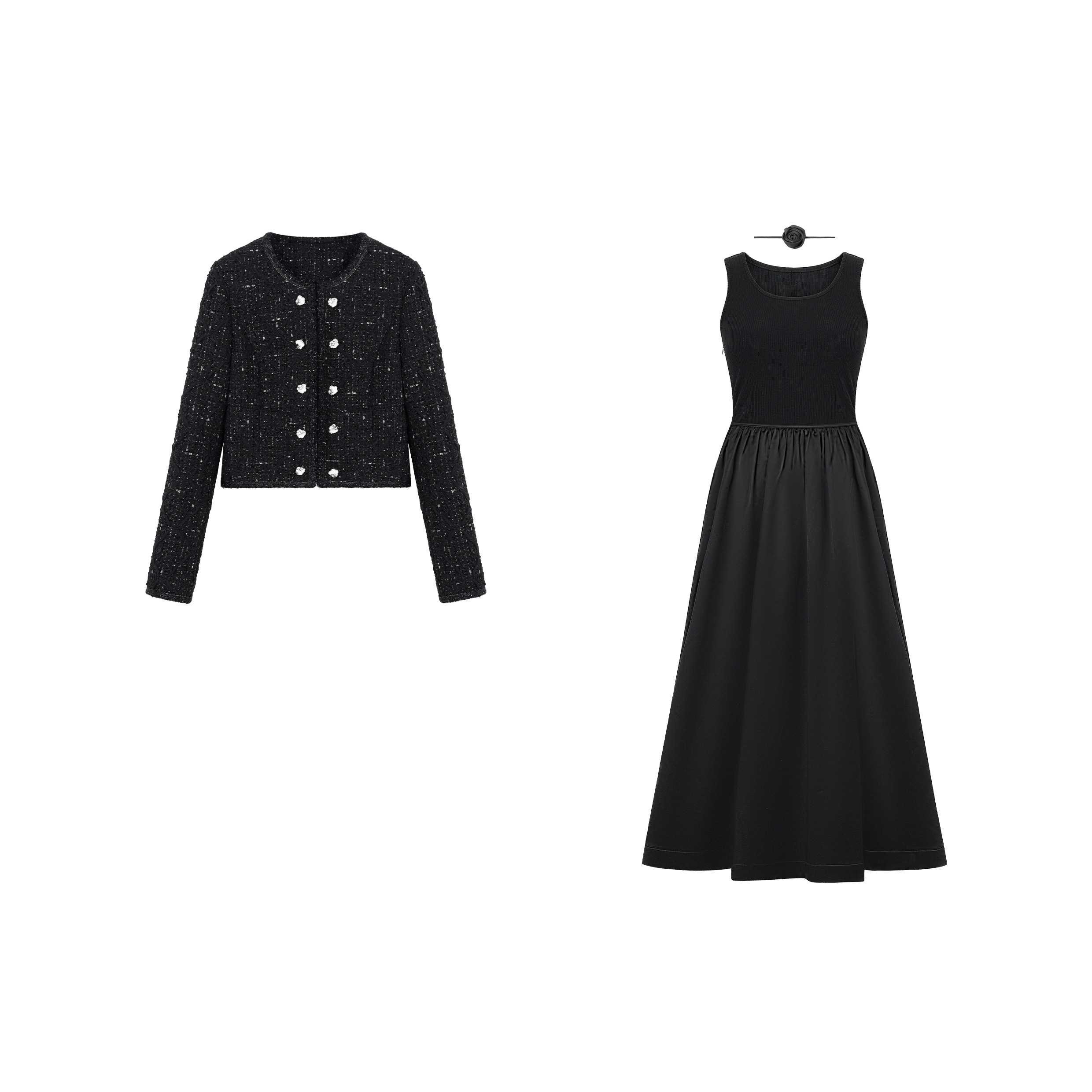 乔拉【星河暗恋】秋季新款小香风黑色圆领短款外套无袖背心连衣裙