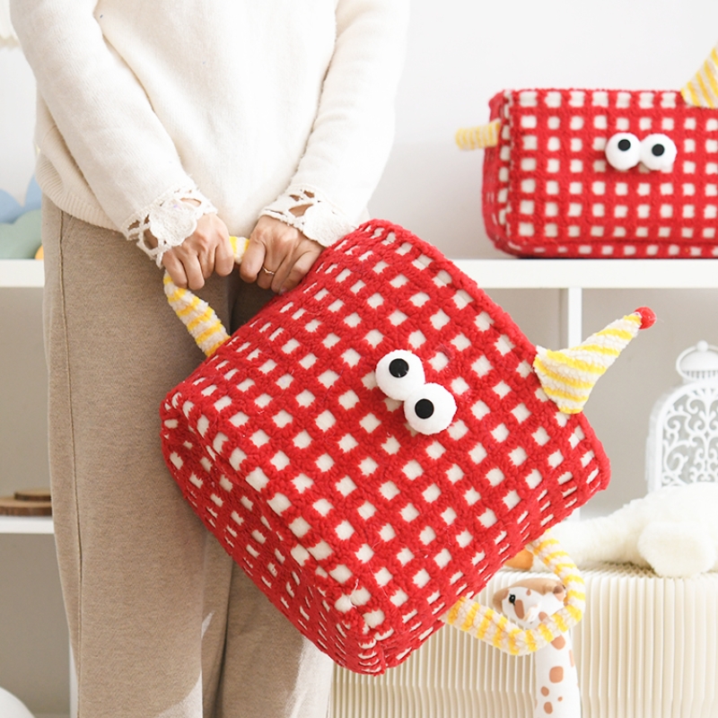 多巴胺毛绒整理箱大卡通布艺可爱玩具收纳筐桌面收纳折叠衣服储物