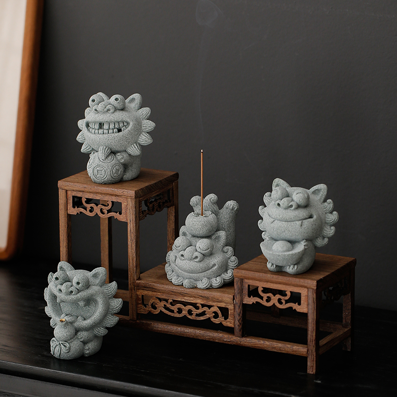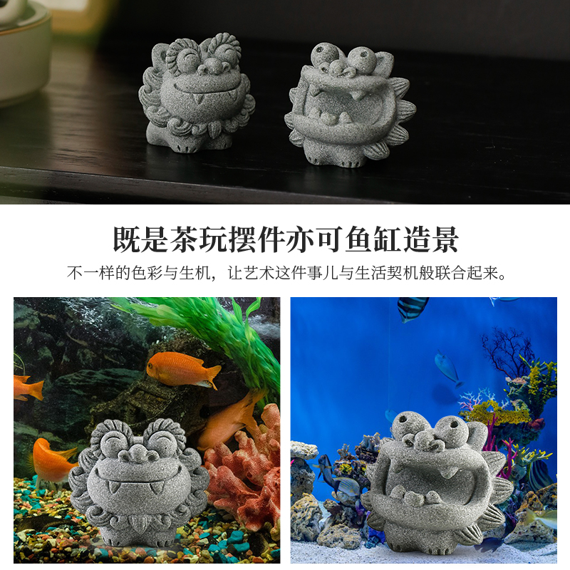国潮石狮子小号茶宠摆件创意吉祥物笔托线香插鱼缸造景桌面装饰品