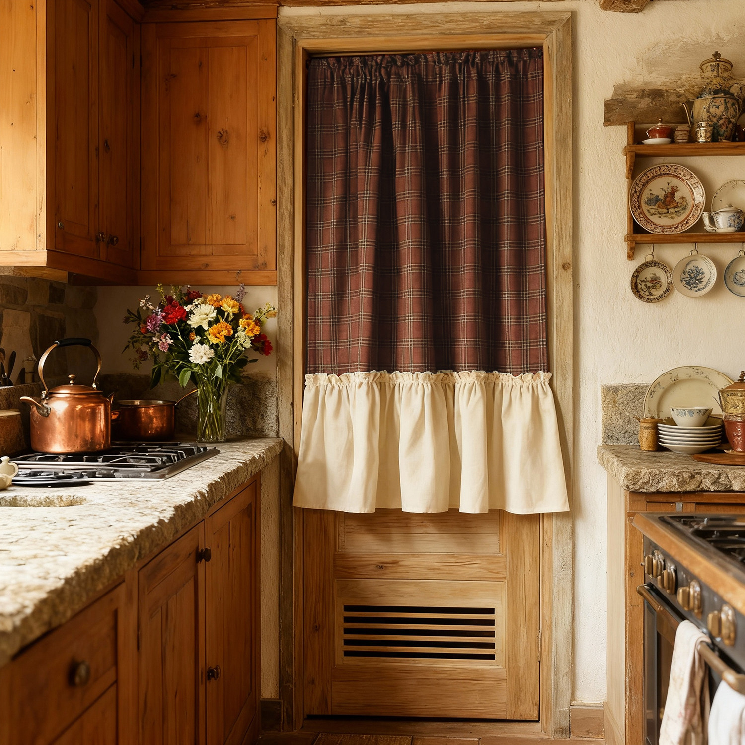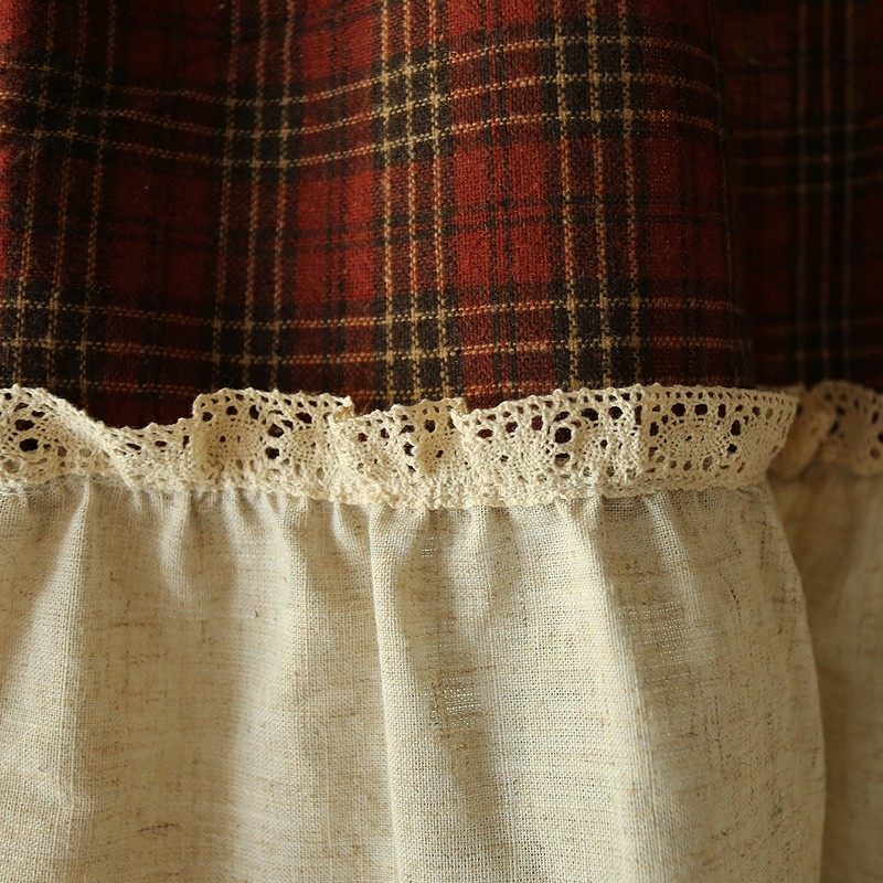 祖母家乡村英伦红色格子门帘遮光窗帘半帘免打孔卧室卫生间定制