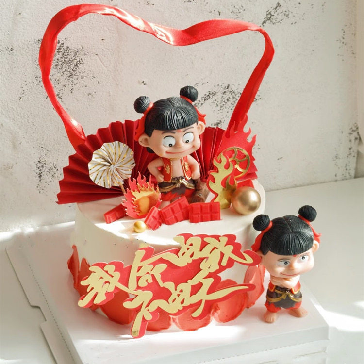 网红蛋糕装饰哪吒玩偶摆件风火轮儿童男孩生日装扮插件插牌配件