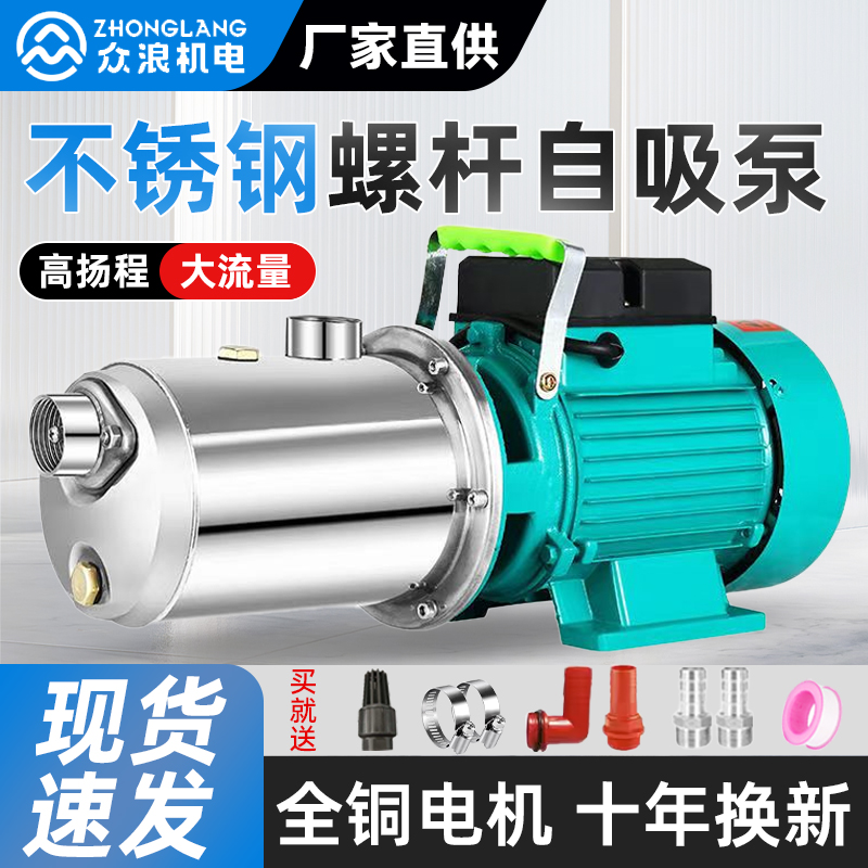 不锈钢螺杆自吸泵220V水井自来水家用增压泵无塔小型高扬程抽水泵