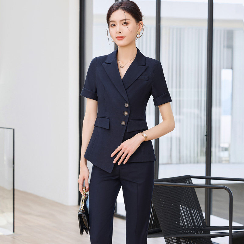 英郦短袖西装套装女士夏季薄款小个子职业装西服正装高端工作服