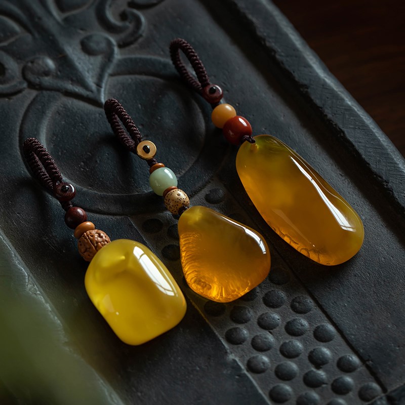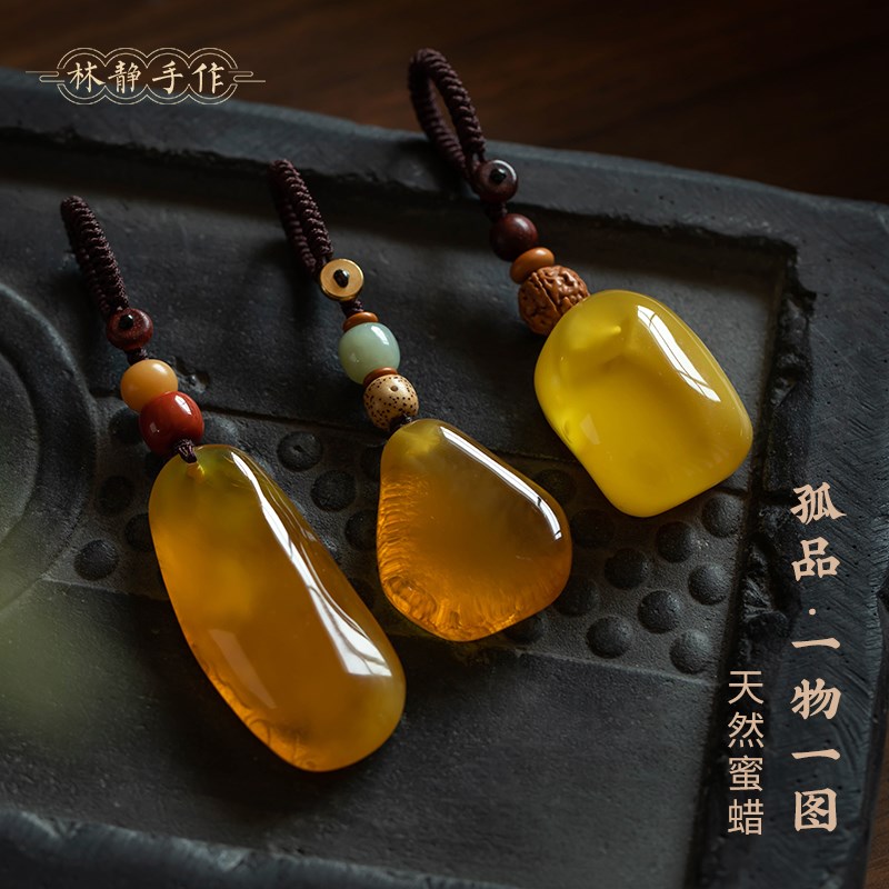 天然鸡油黄琥珀蜜蜡汽车钥匙扣挂件男女一物一证手工吊坠挂饰高档