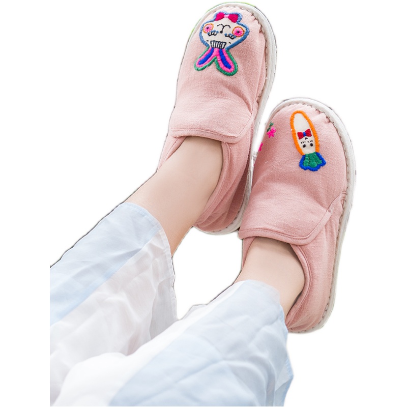 时尚老北京千层底棉鞋女款手工绣花鞋冬季加厚保暖豆豆棉布鞋软底
