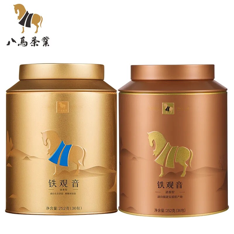 八马茶业 金马罐系列 安溪铁观音清香浓香口粮茶两罐组合款共504g